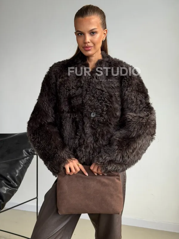 Дубленка кроп-топ из овчины калган 102600