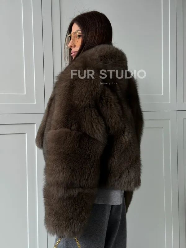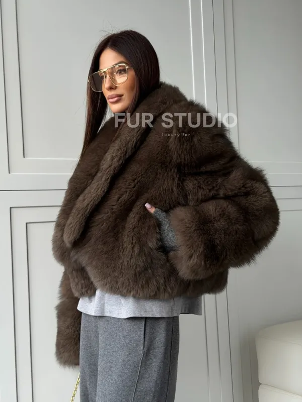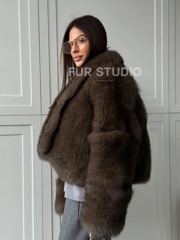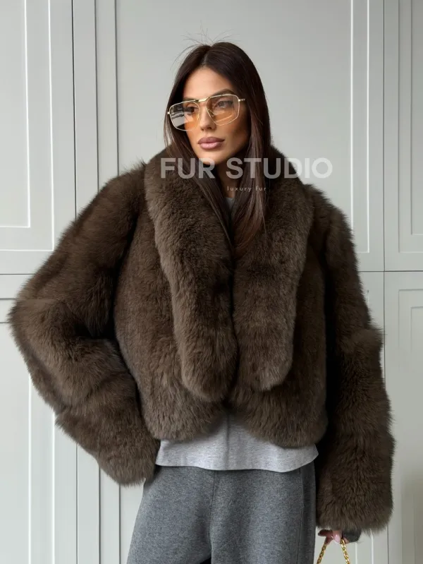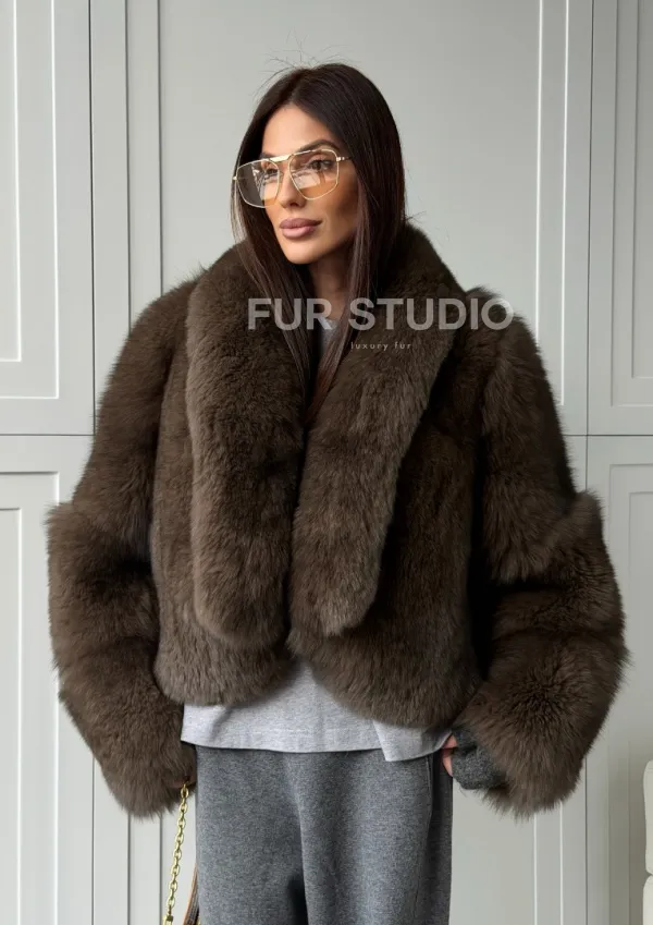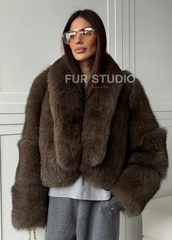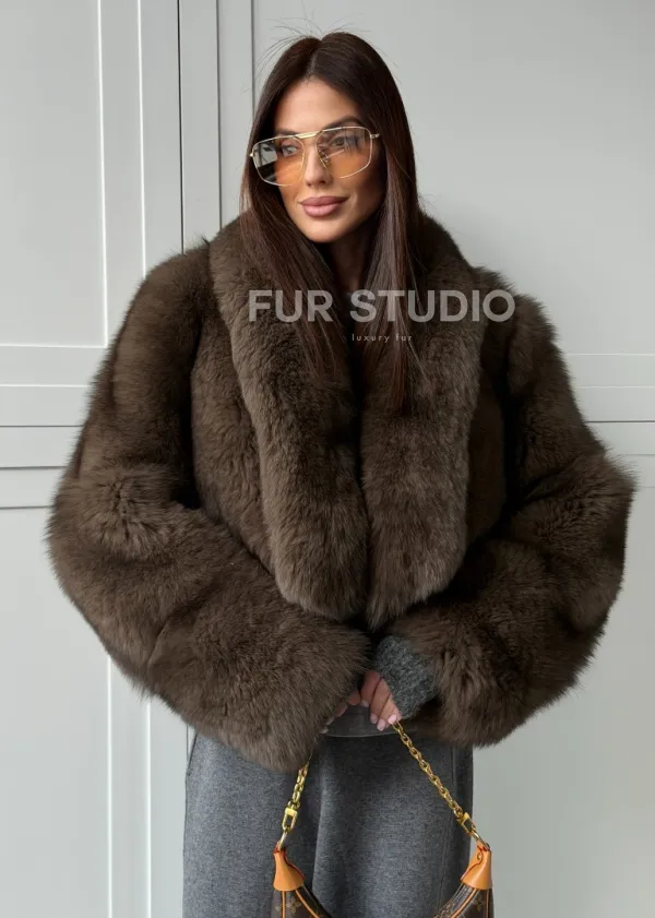 Мех данной шубы финский песец, цвет коричневый. Предлагается в размерах от 40 до 48. Длина модели 50-55 см, что выгодно подчеркивает фигуру девушек. Эта модель идеально подойдет для девушек и женщин, предпочитающих роскошные натуральные меха.