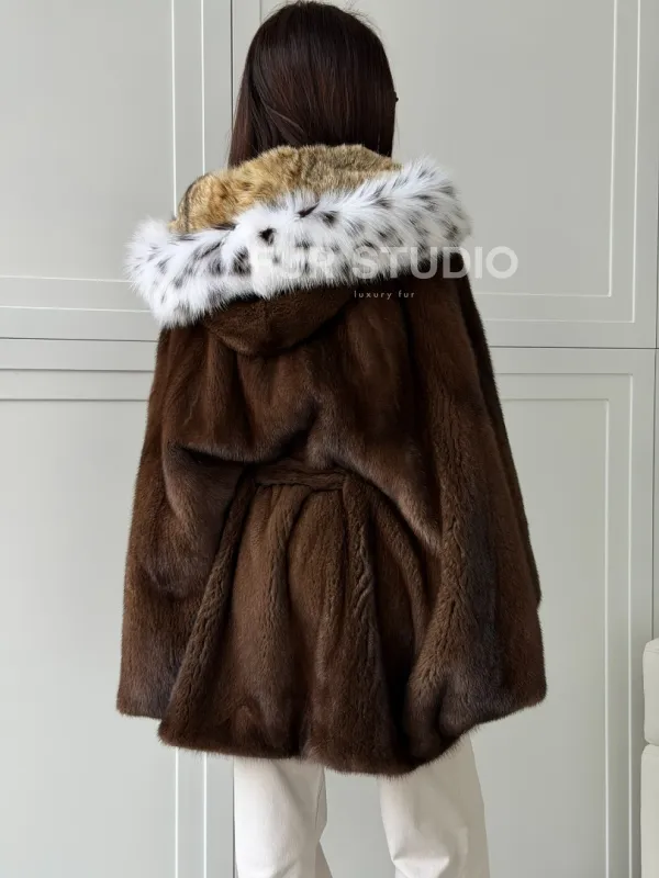 Норковая шуба с капюшоном по рысь 102819