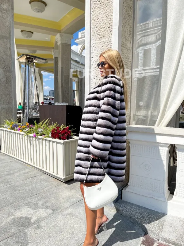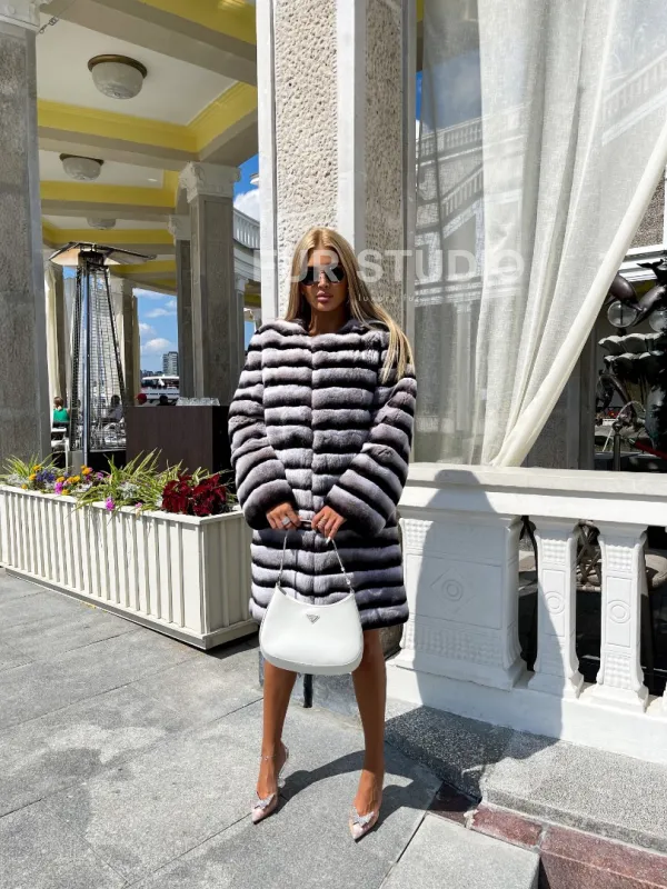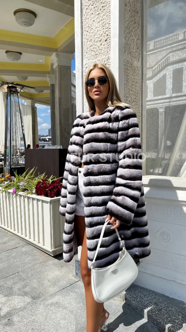 Необычная модель подчеркнет достоинства фигуры. Комфортная длина удобна в носке. Нежный мех согреет владелицу в непогоду. Оригинальный цвет выгодно подчеркнет оттенок кожи и волос. Добавьте в образ статусную сумочку, и вы будете выглядеть изыскано и лаконично. Качество изделия будет радовать хозяйку долгие годы. Купить шиншиловую шубу из орилага могут девушки, которые обладают безукоризненным вкусом.