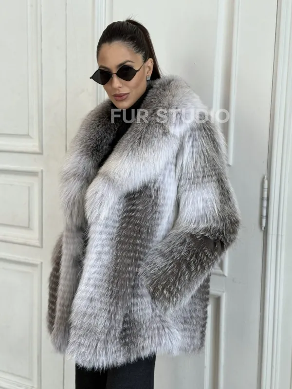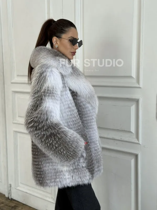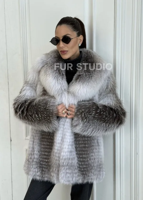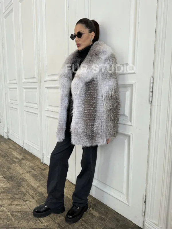 Шуба из меха арктической лисы - отличный выбор женщин, которые любят выглядеть стильно в зимнее время года. Мех смотрится шикарно и богато. Необычная расцветка подчеркнет цвет волос и глаз владелицы. В шубе будет комфортно в холодную зиму. Широкие манжеты делают акцент на тонкости кистей.